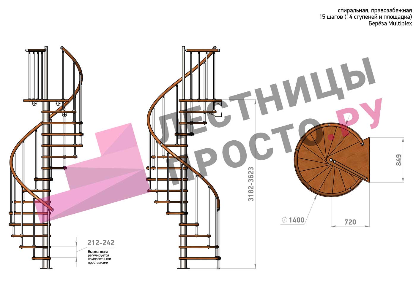 Высота шага 212 - 242 мм