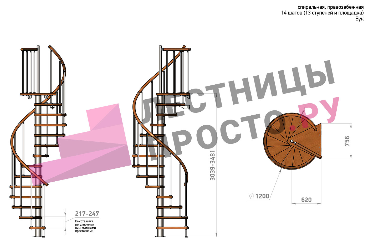 | Винтовая лестница Prosto Spiral White D120см, h303.9-348,1 см, бук |