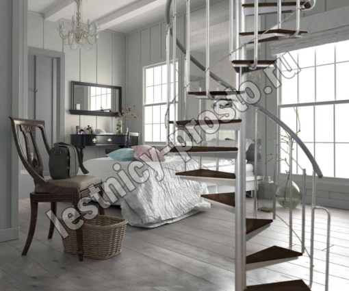 Винтовая лестница Solo vertical серебро, медовая ольха