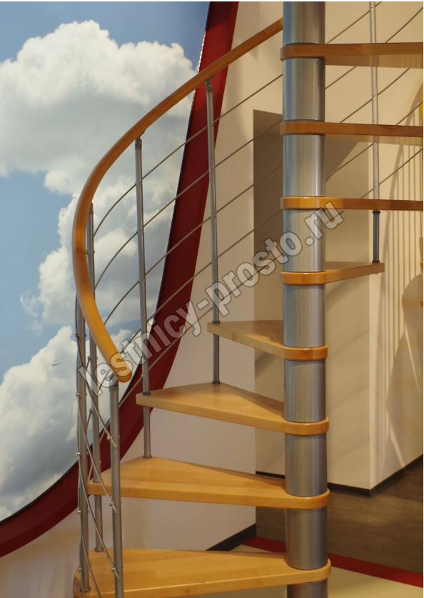 Ступени и поручень выполнены из сращенного бука и покрыты износостойким бесцветным защитным лаком. Все металлические детали с высококачественным порошковым покрытием. Каркас и металлические стойки серебристого цвета. Под заказ возможно изготовление лестницы другой расцветки.