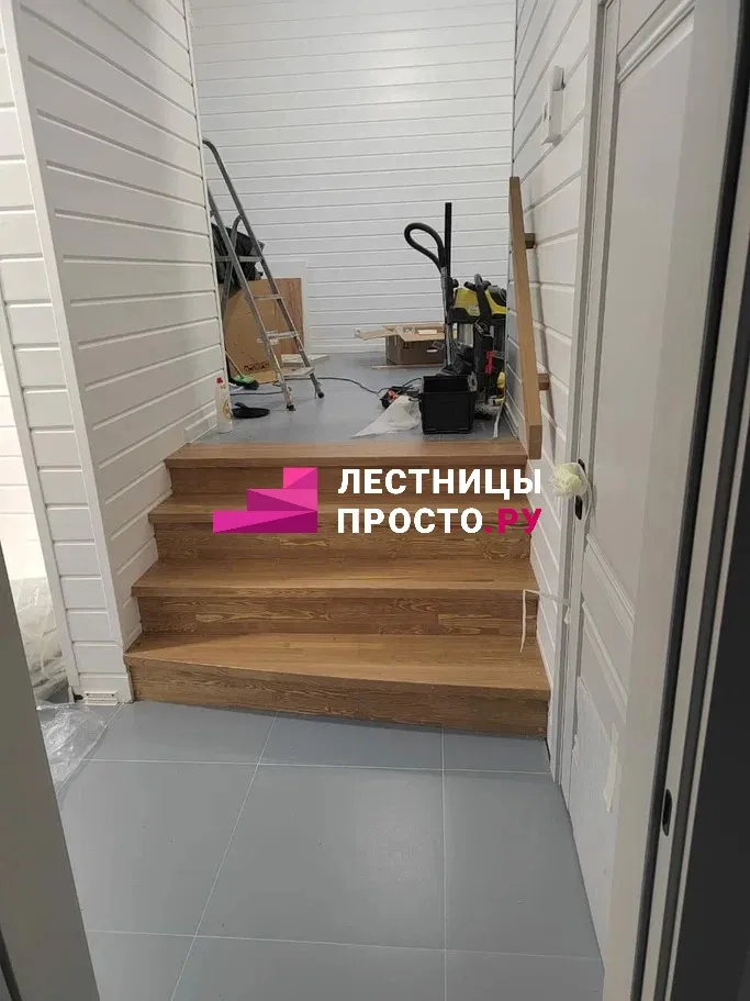 Лестница из сосны с поворотом и подступёнками для частного дома