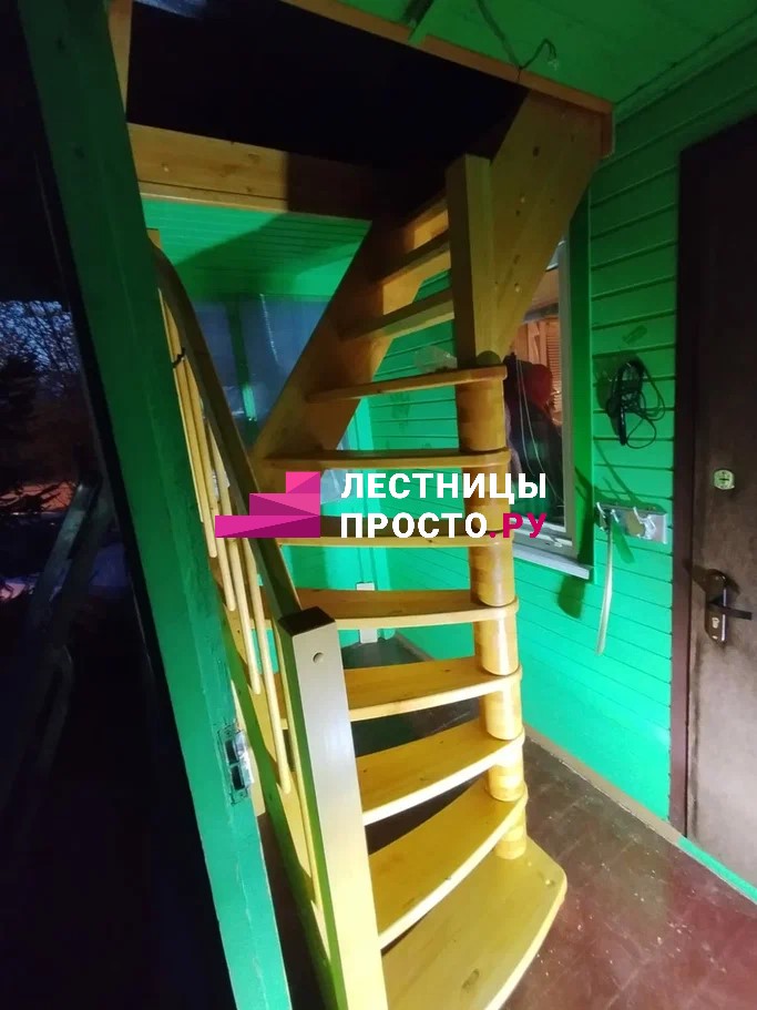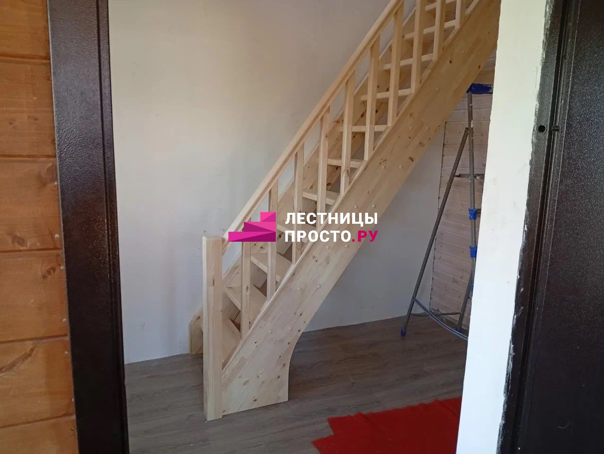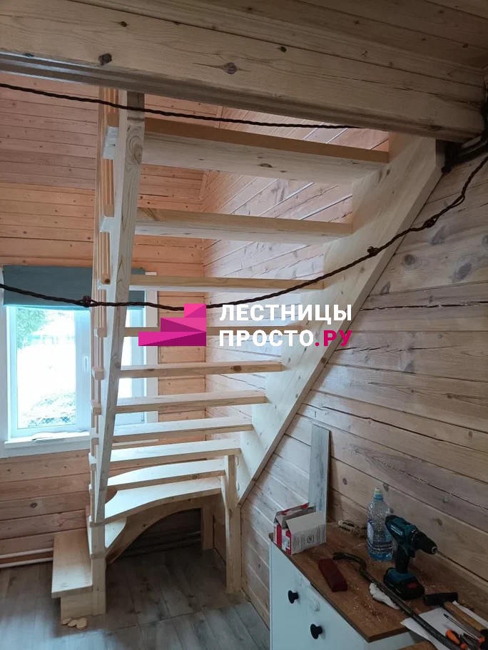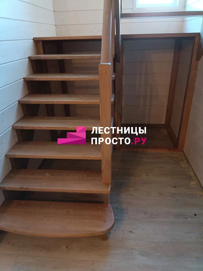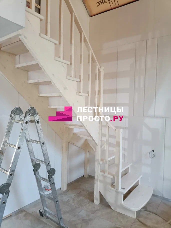 Г-образная лестница из сосны для частного дома ЛС-07/4